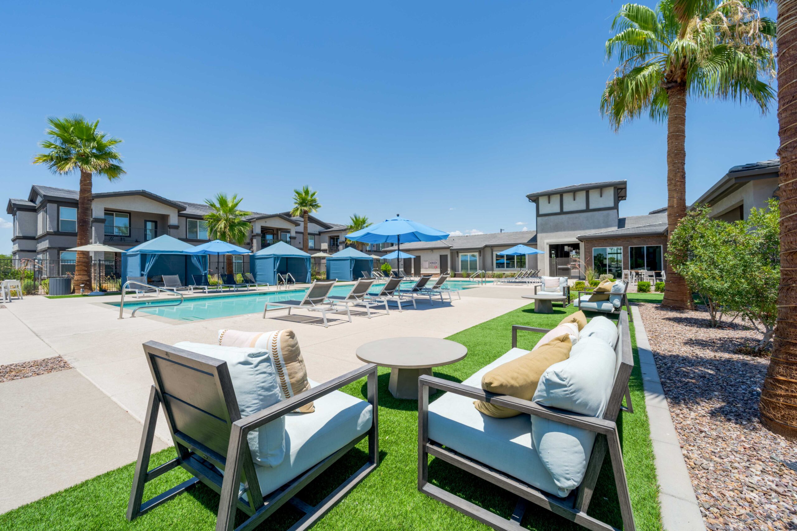 Comfort and style are carefully combined to provide you with the best apartment living. View the communal spaces like the lavish pool with private cabanas and the activity lawn with pet-friendly bark park. Explore the interior apartment floor plans featuring stainless steel kitchen appliances and granite countertops. Elevate your living space here at Obsidian on Glendale and our Glendale, AZ apartments.